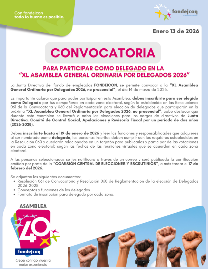 Selecciona la empresa en que laboras, registra tus datos y uno de los gestores de servicio se pondrá en contacto contigo para que puedas hacer parte de esta gran familia de Asociados Fondeicon.