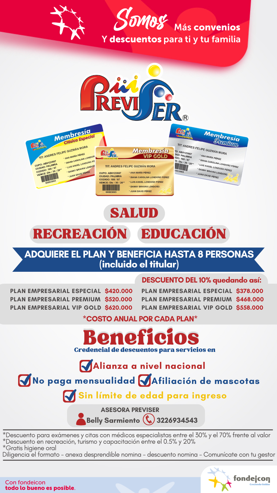 *Este valor es con descuento especial para asociado. para adquirir membresía, comunícate con el asesor Previser*